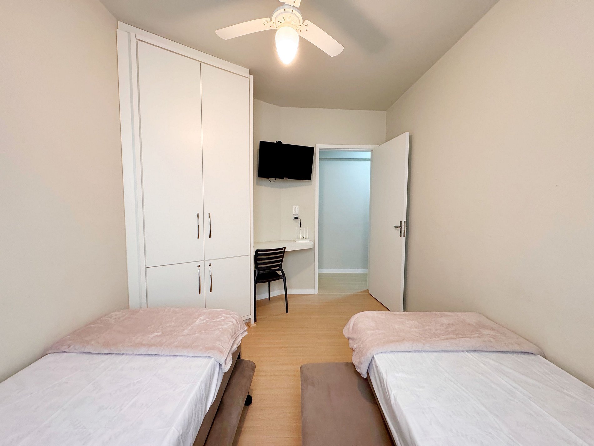 - 1 quarto com 4 camas de solteiro, armário para guardar roupas e ar condicionado;