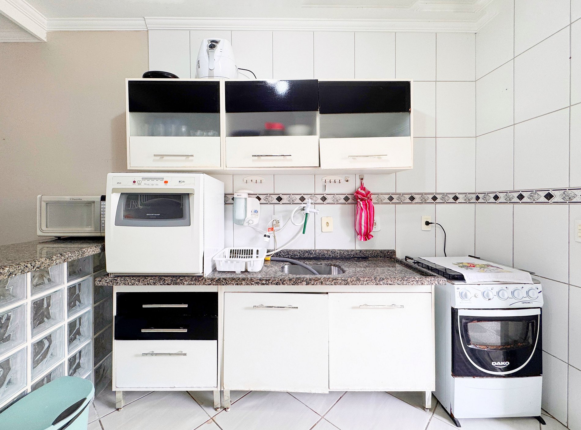 - Cozinha completa com geladeira, fogão, forno, microondas, maquina de lavar louça, cafeteira, kit café, utensílios domésticos e panelas;