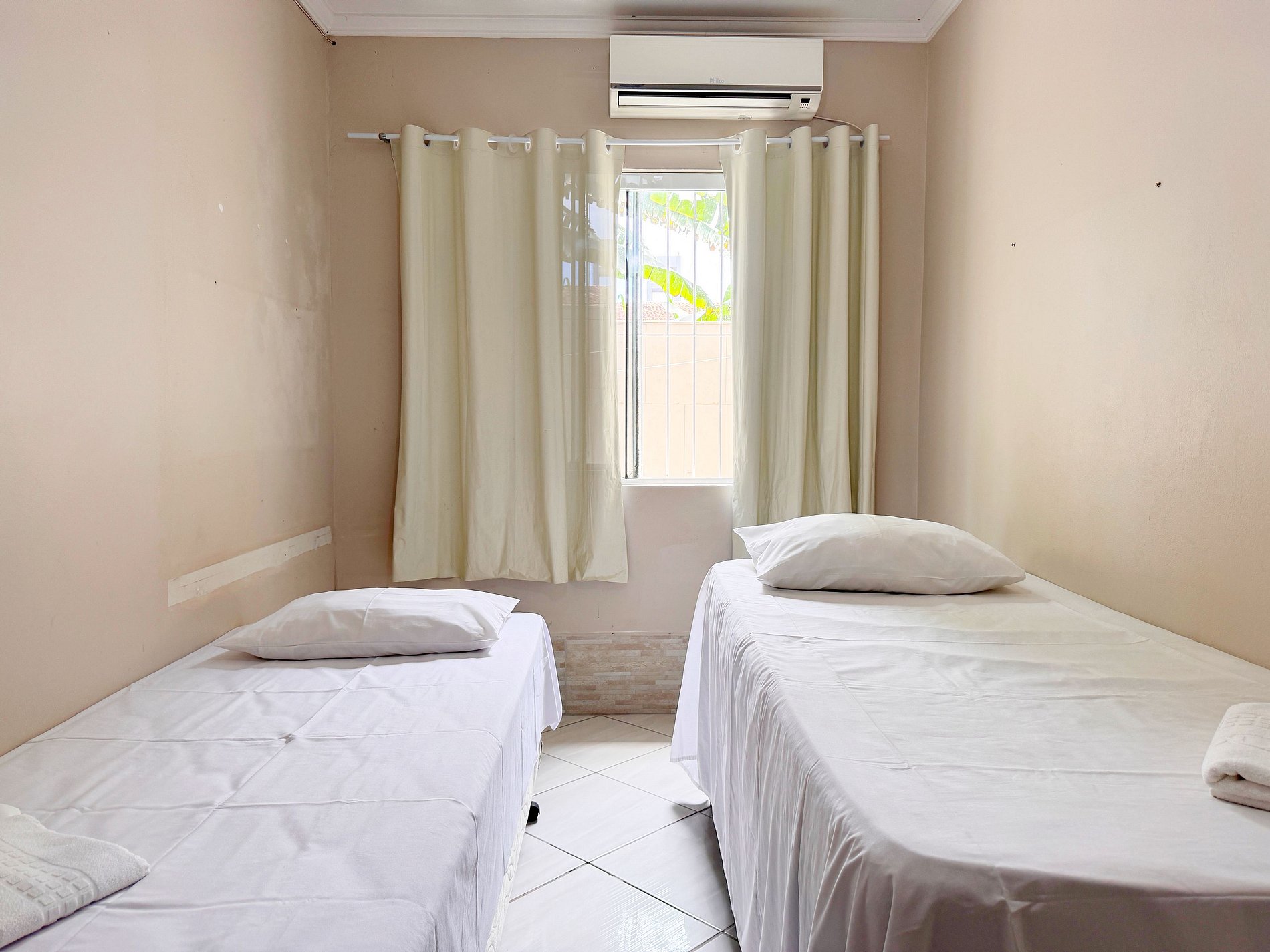 - 1 quarto com 2 camas de solteiro, 1 colchão extra e ar condicionado;