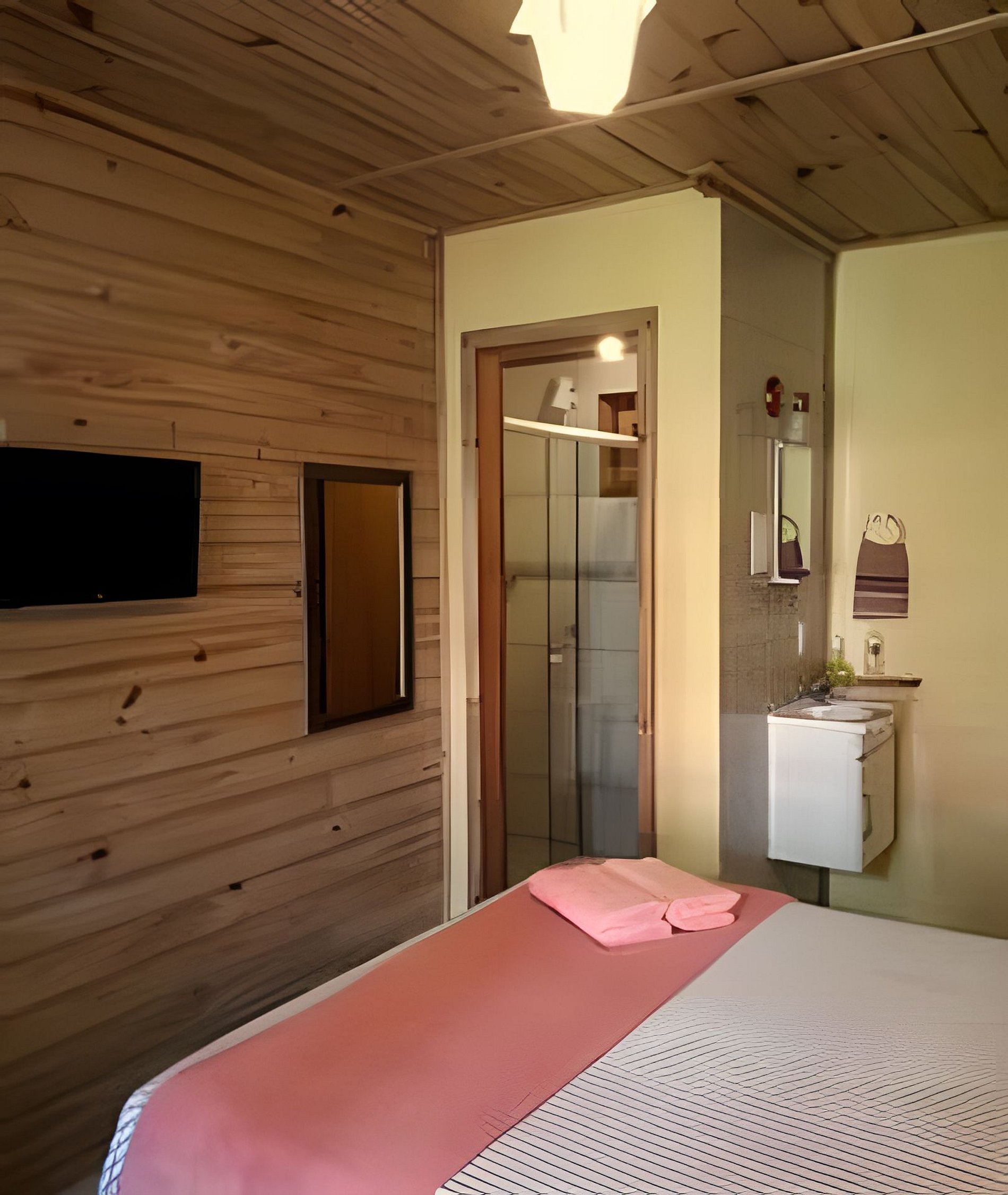 Pensando no sono tranquilo – estamos em uma região silenciosa - oferecemos ótimas camas, luminária de cabeceira, tomadas perto da cama e ar condicionado split, para que tudo fique muito aconchegante. E para complementar sua estadia, oferecemos também roupa de cama e banho.