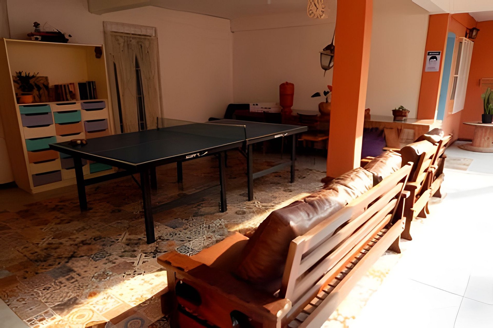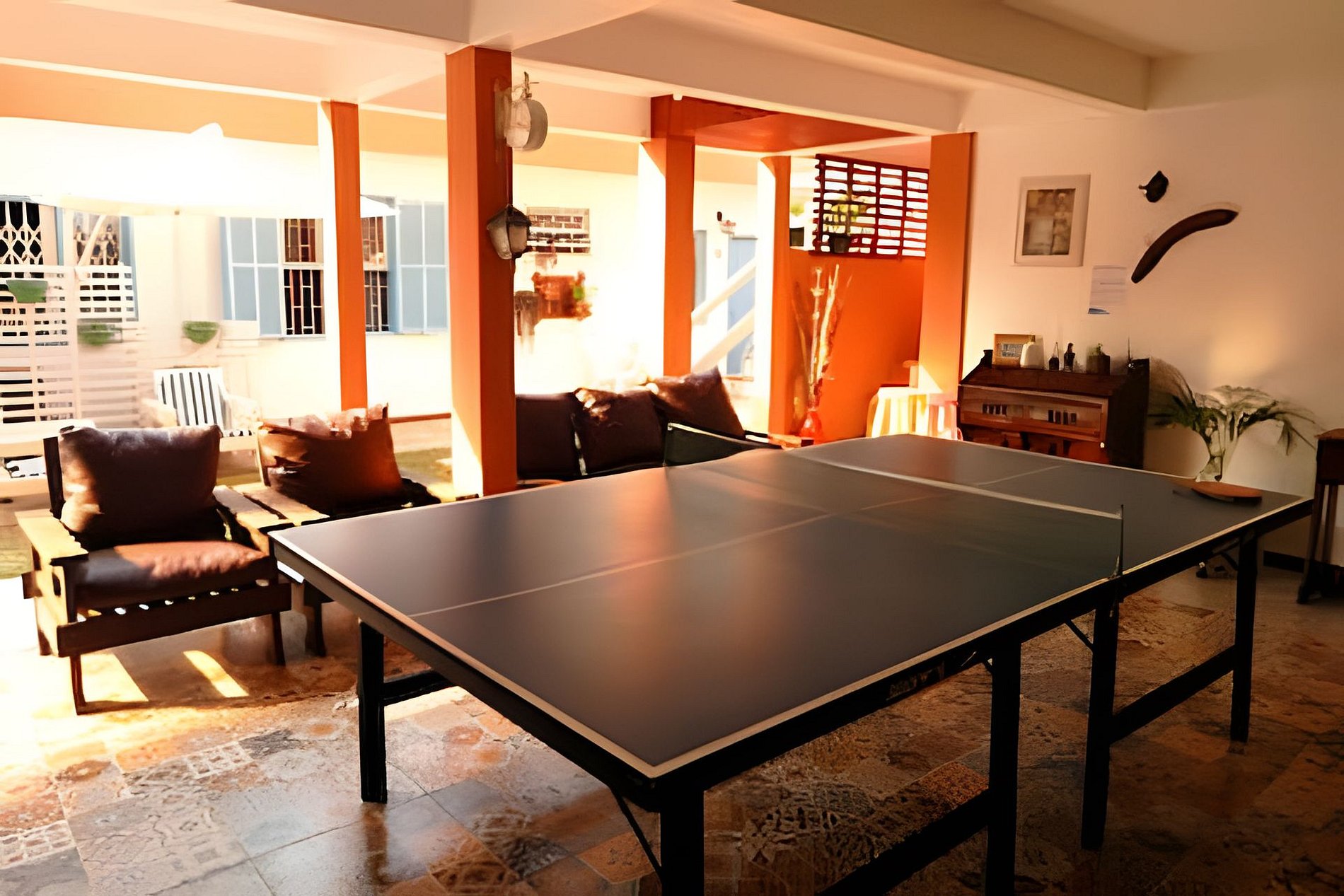 A diversão também tem lugar garantido por aqui, nossa área de convivência tem mesa de ping pong, jogos, livros e um espaço delicioso para aquele descanso pós praia.