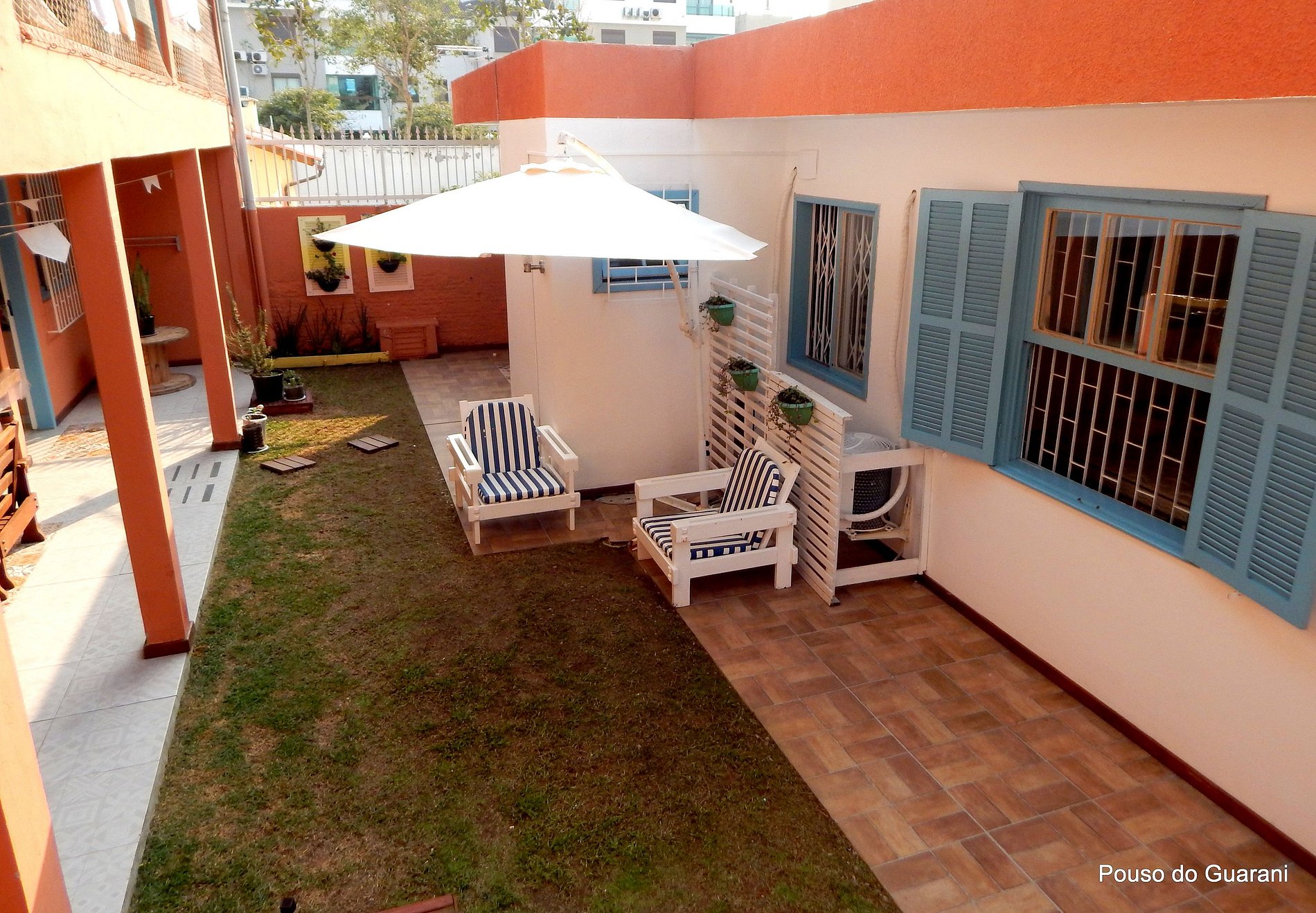 Somos o Pouso do Guarani, um residencial destinado ao aluguel de temporada localizado em uma rua calma e segura. 200m do mar e 800m do centrinho dos Ingleses. O residencial conta com suítes, apartamentos e estúdios equipados para te receber com segurança e tranquilidade. Pensando no sono tranquilo – estamos em uma região silenciosa - oferecemos ótimas camas, luminária de cabeceira, tomadas perto da cama e ar condicionado split, para que tudo fique muito aconchegante. E para complementar sua estadia, oferecemos também roupa de cama e banho. A suíte conta com frigobar, microondas, chaleira elétrica, pratos e copos e talheres para auxiliar em pequenas refeições. A diversão também tem lugar garantido por aqui, nossa área de convivência tem mesa de ping pong, jogos, livros e um espaço delicioso para aquele descanso pós praia. Outras observações Nós somos um RESIDENCIAL PARA ALUGUEL DE TEMPORADA, por isso, alguns serviços oferecidos em hotel/pousada não são oferecidos aqui. Para não ficar nenhuma dúvida, listamos abaixo alguns pontos importantes para você saber: • Não oferecemos café, mas a suíte tem micro-ondas, frigobar, chaleira elétrica e algumas louças para uma refeição rápida. Além disso, na esquina tem um mercadinho com café e outras opções num raio de 700m. • Não oferecemos serviço de limpeza/arrumação durante a hospedagem. • Não fazemos troca ou reposição de roupas de cama, mesa e banho ou de itens de higiene e limpeza. • A suíte NÃO possui garagem, mas caso você precise, pode estacionar na rua (quase em frente), é uma rua bem tranquila. Na baixa temporada nos consulte para saber se dispomos de alguma vaga. • Todas as nossas tomadas são 220 V • A suíte está localizada no térreo e por ser toda fabricada em madeira, o ruído dos passos da suíte de cima pode ser ouvido. Vem conhecer o Pouso, estamos te esperando! ☀ Ficou com dúvidas? É só entrar em contato, estamos prontos para te ajudar.