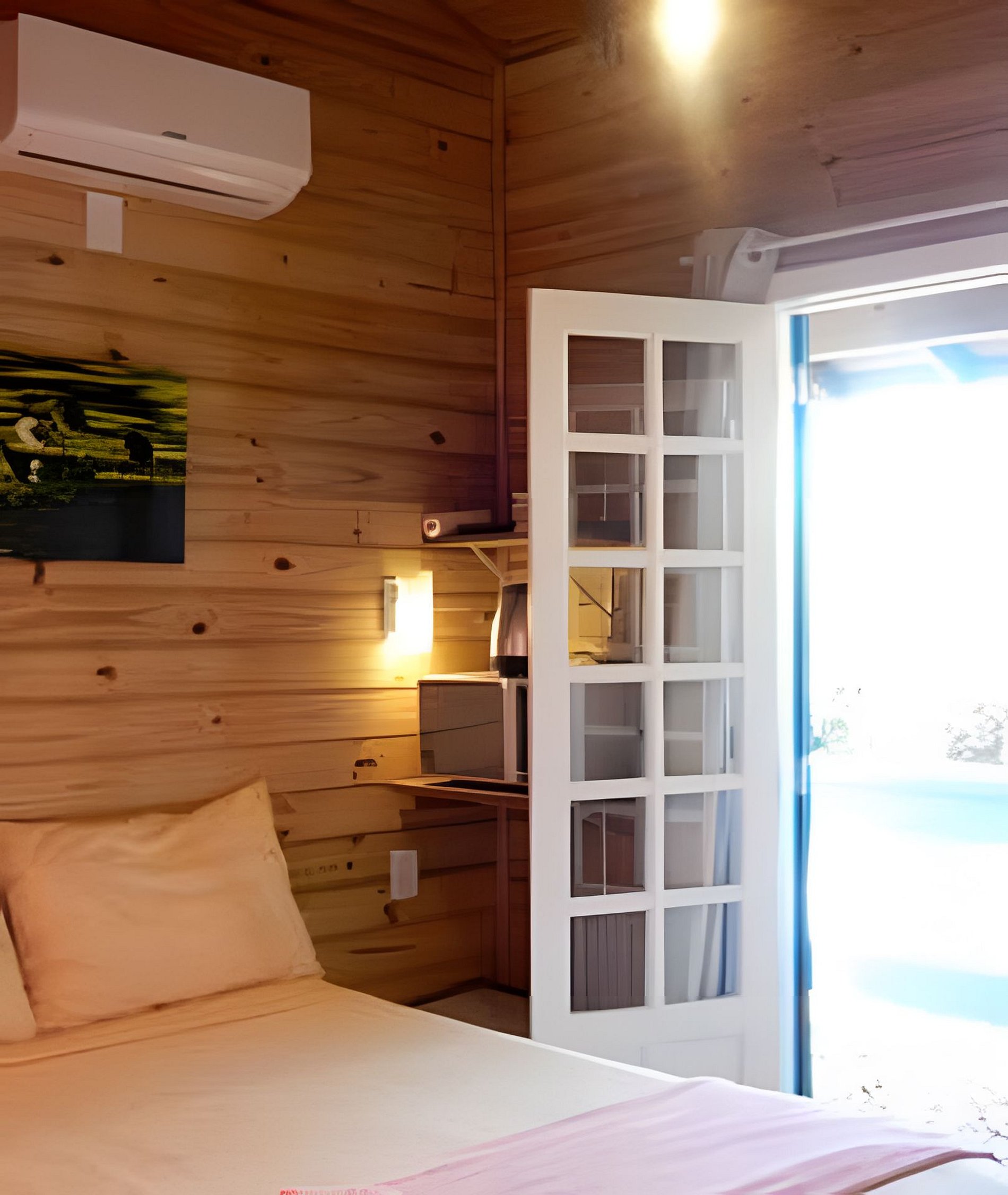 Pensando no sono tranquilo – estamos em uma região silenciosa - oferecemos ótimas camas, luminária de cabeceira, tomadas perto da cama e ar condicionado split, para que tudo fique muito aconchegante. E para complementar sua estadia, oferecemos também roupa de cama e banho.