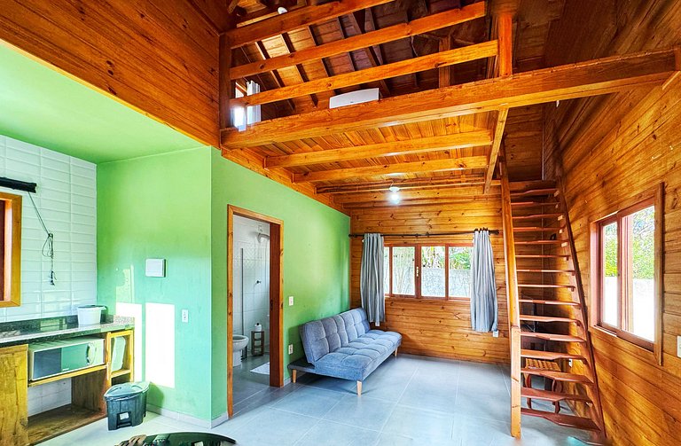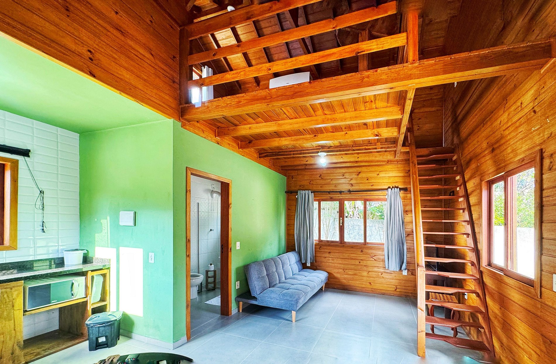 Linda cabana muito aconchegante com cama de casal, ar-condicionado, cozinha compacta. O lugar perfeito para casais, trazer os filhos ou grupos de amigos passarem dias inesquecíveis de calmaria em contato com a natureza! Ambiente ideal para relaxar, recarregar as energias. Localizado próximo da praia do Moçambique e Barra da Lagoa, padaria, supermercado, restaurantes, bares e comércio em geral.