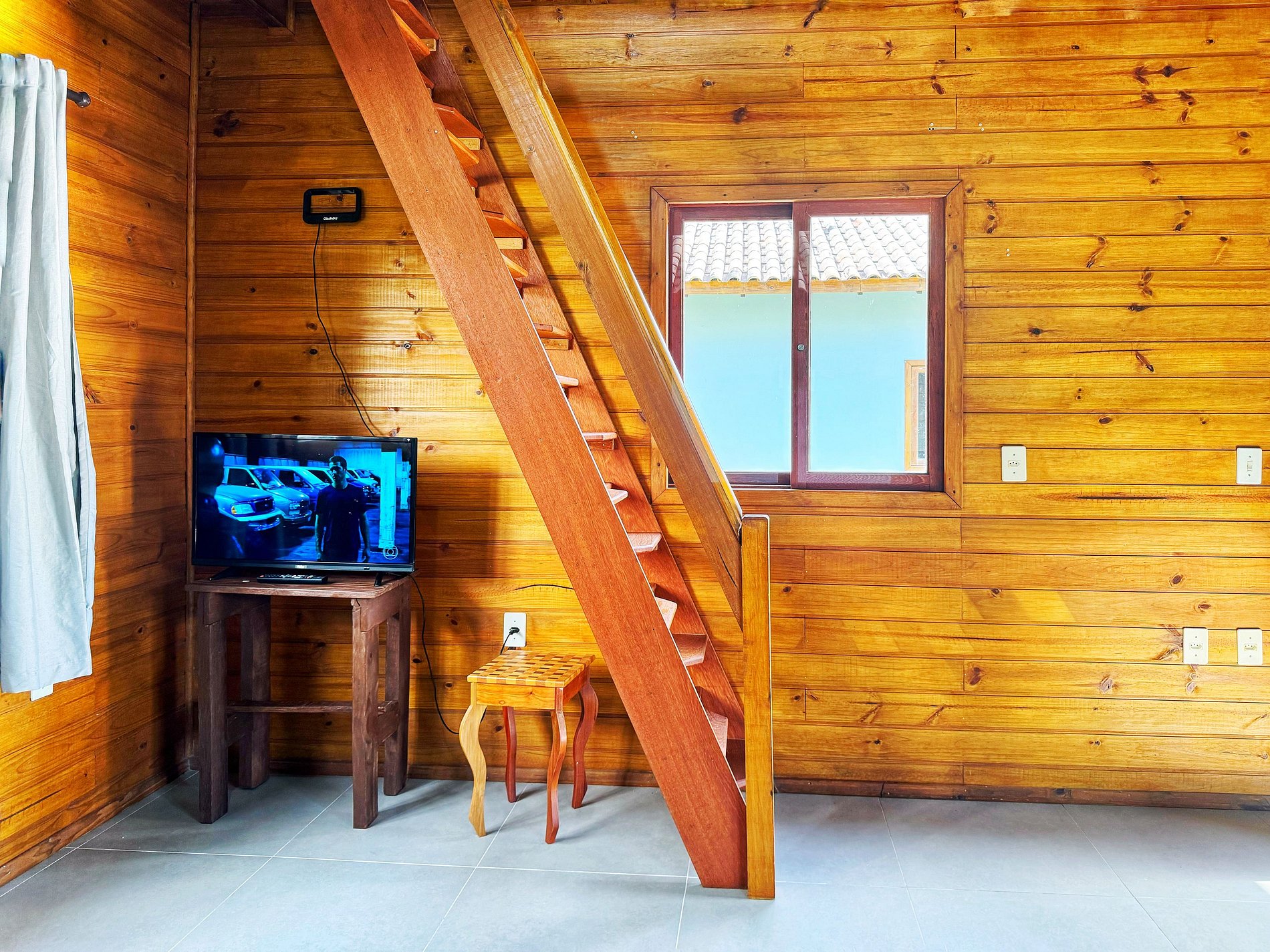 Escada para os quartos é muito inclinada, não indicada para crianças, idosos ou pessoas com dificuldade de locomoção.