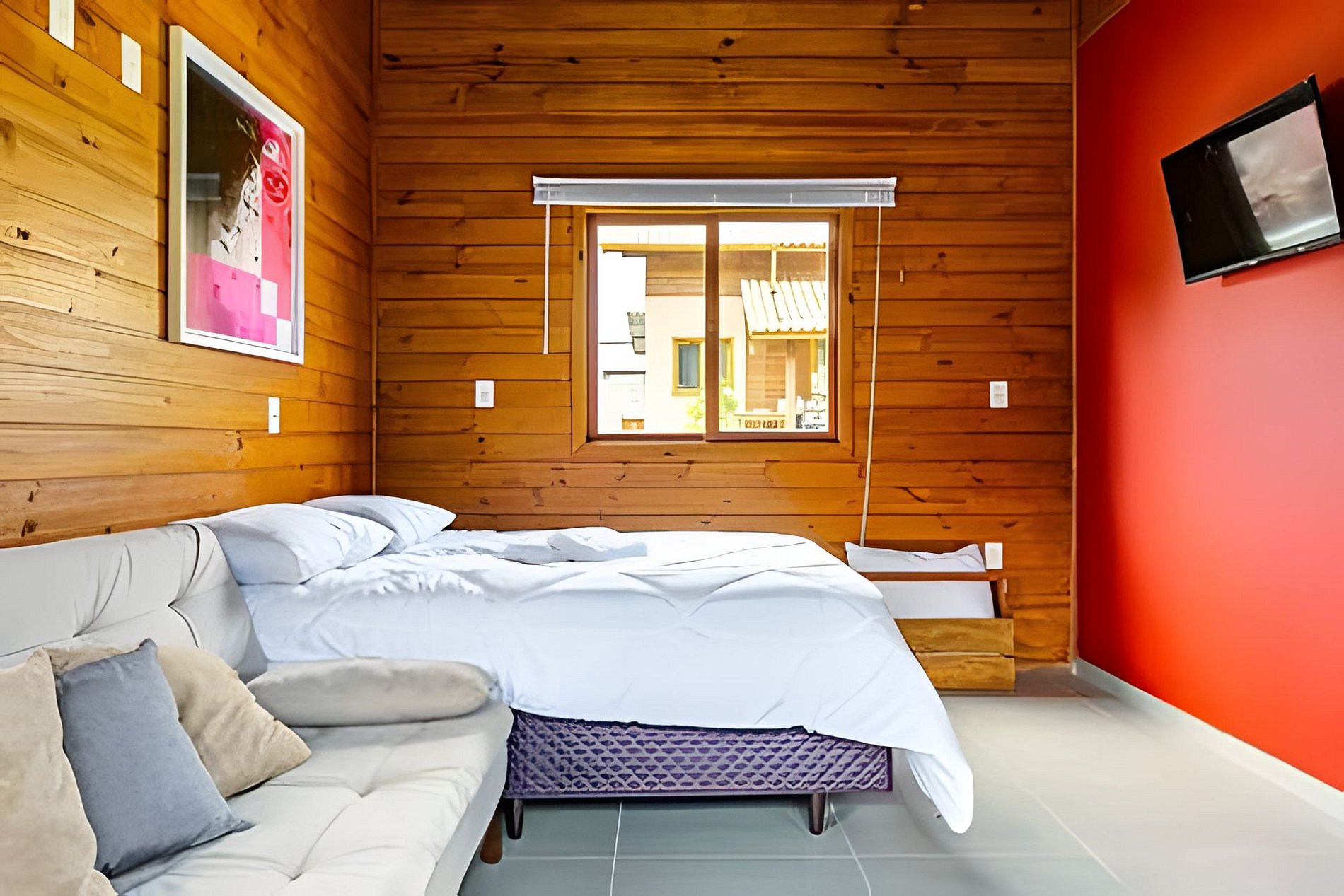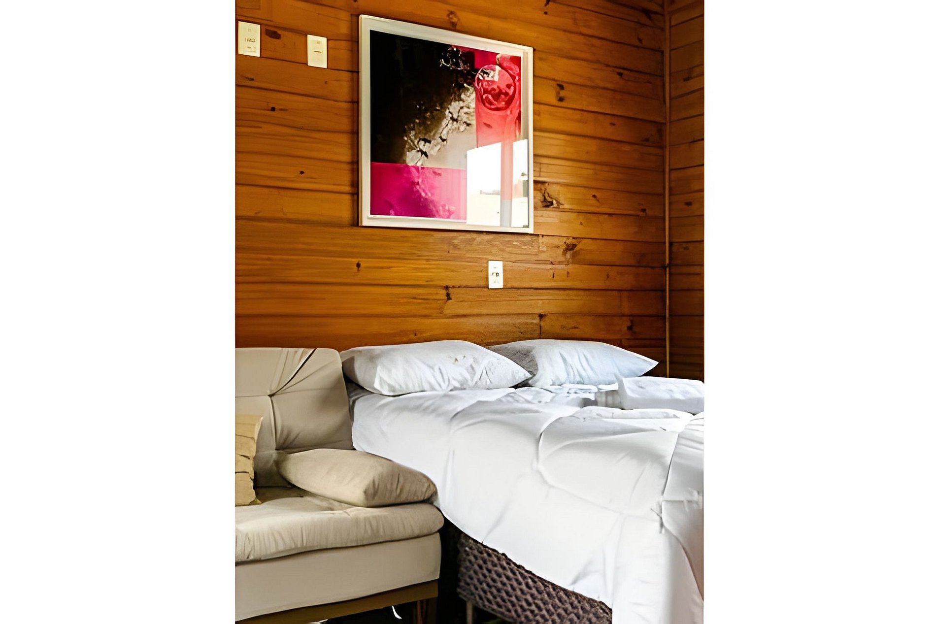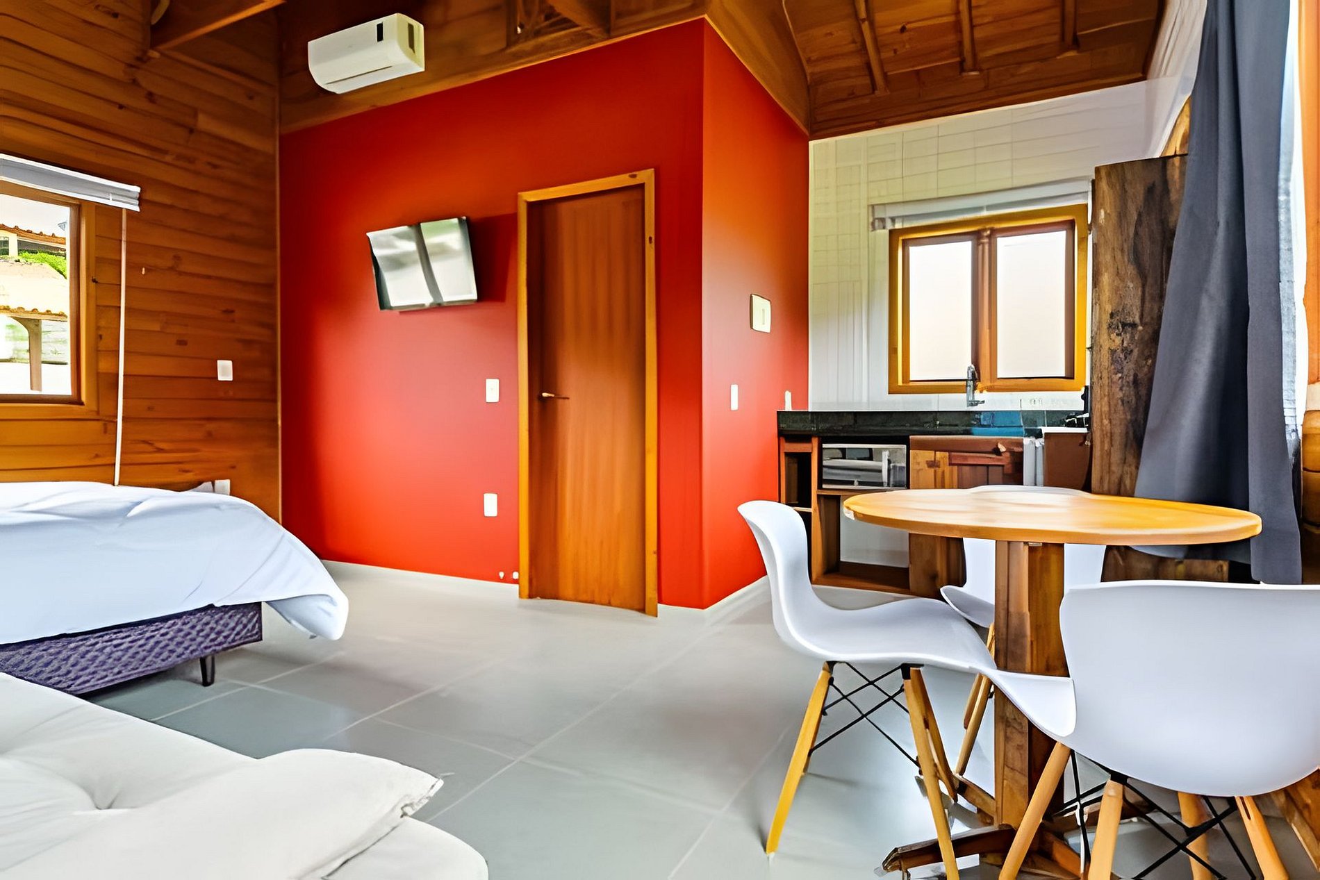Relaxe neste espaço calmo e cheio de estilo. Linda cabana muito aconchegante com uma cama de casal e um sofá-cama, ar-condicionado, cozinha compacta. O lugar perfeito para casais, trazer os filhos ou grupos de amigos passarem dias inesquecíveis de calmaria em contato com a natureza!
