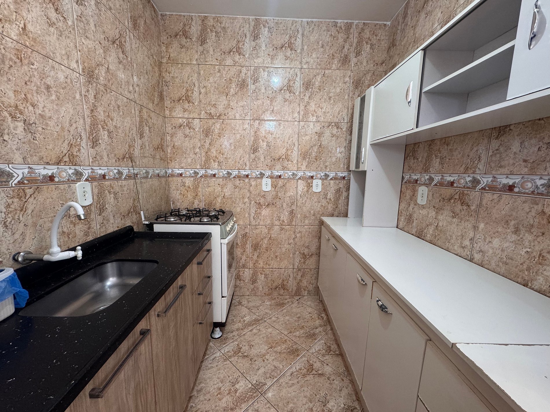 Cozinha equipada com itens essenciais para preparo de refeições