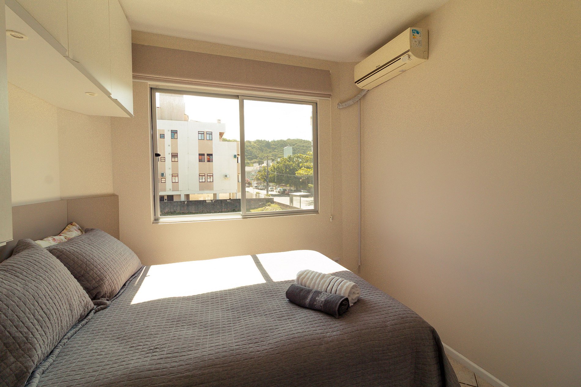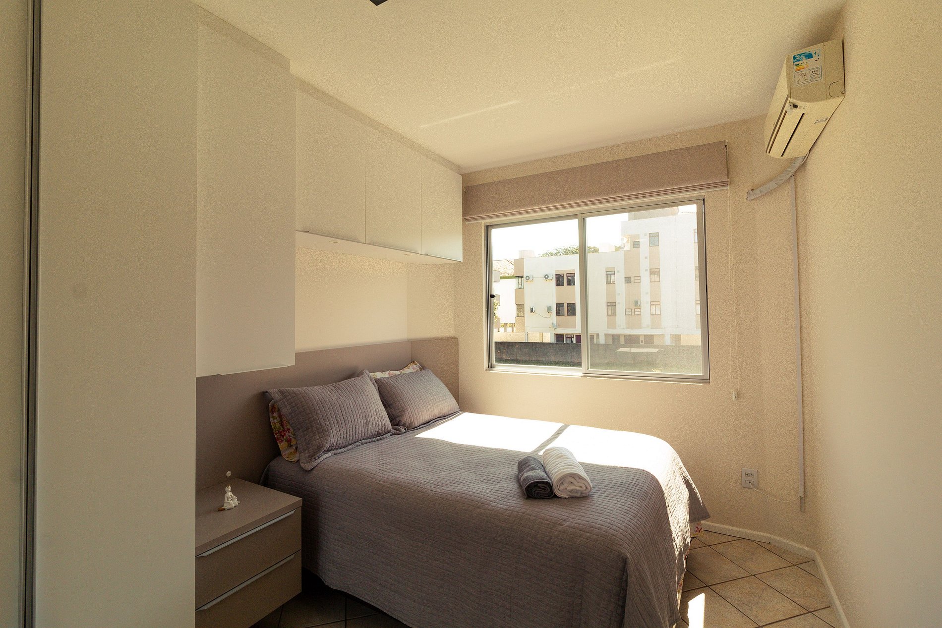 - 1 quarto com cama de casal e ar condicionado;
