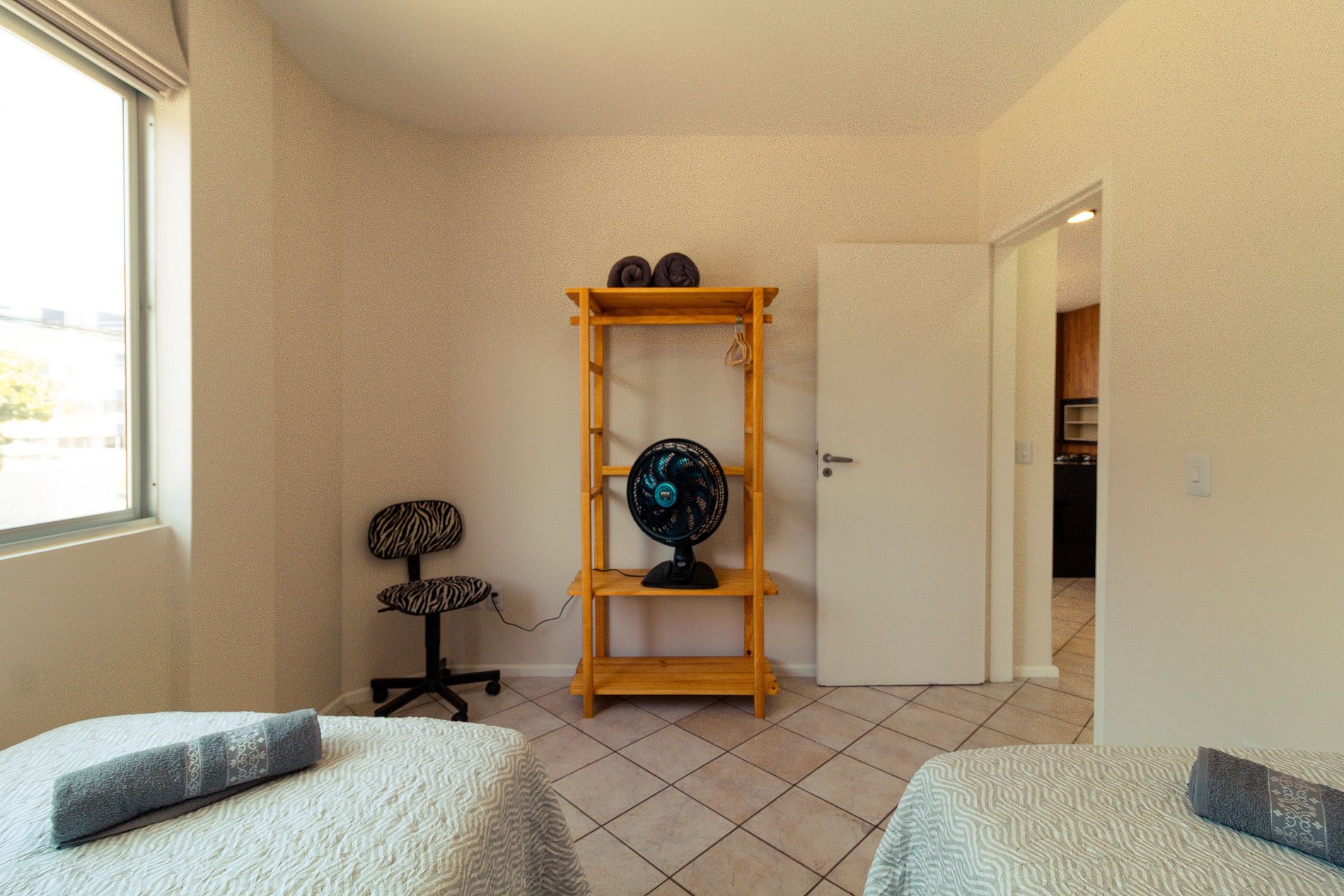 - 1 quarto com duas camas de solteiro e ventilador;