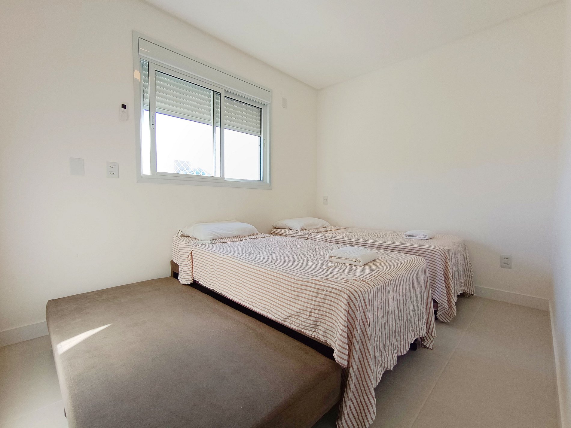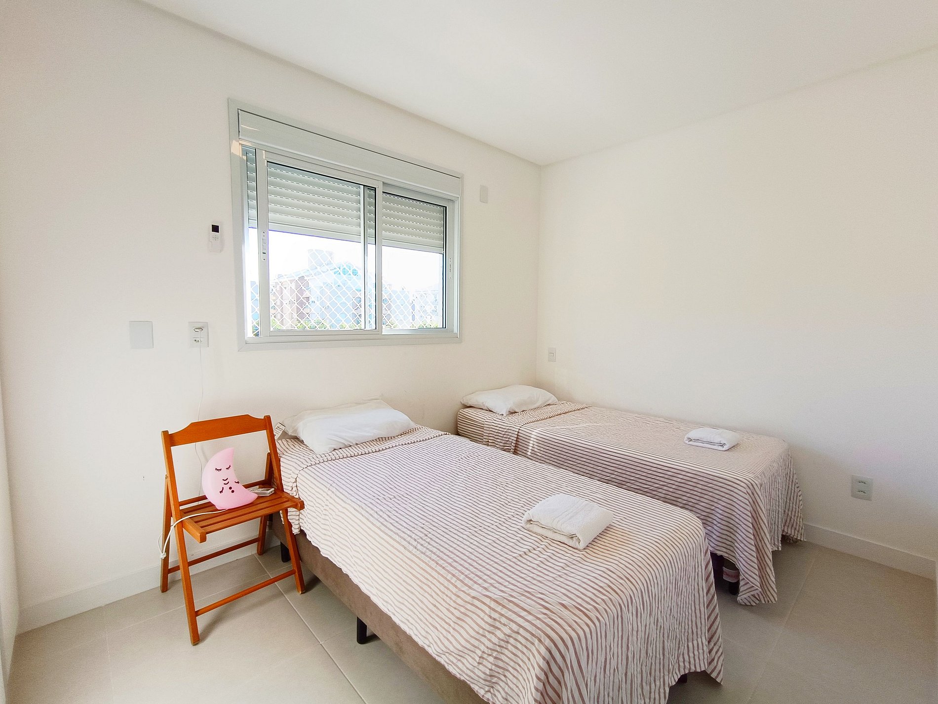 - 1 quarto com 3 camas de solteiro, armário e ar-condicionado;