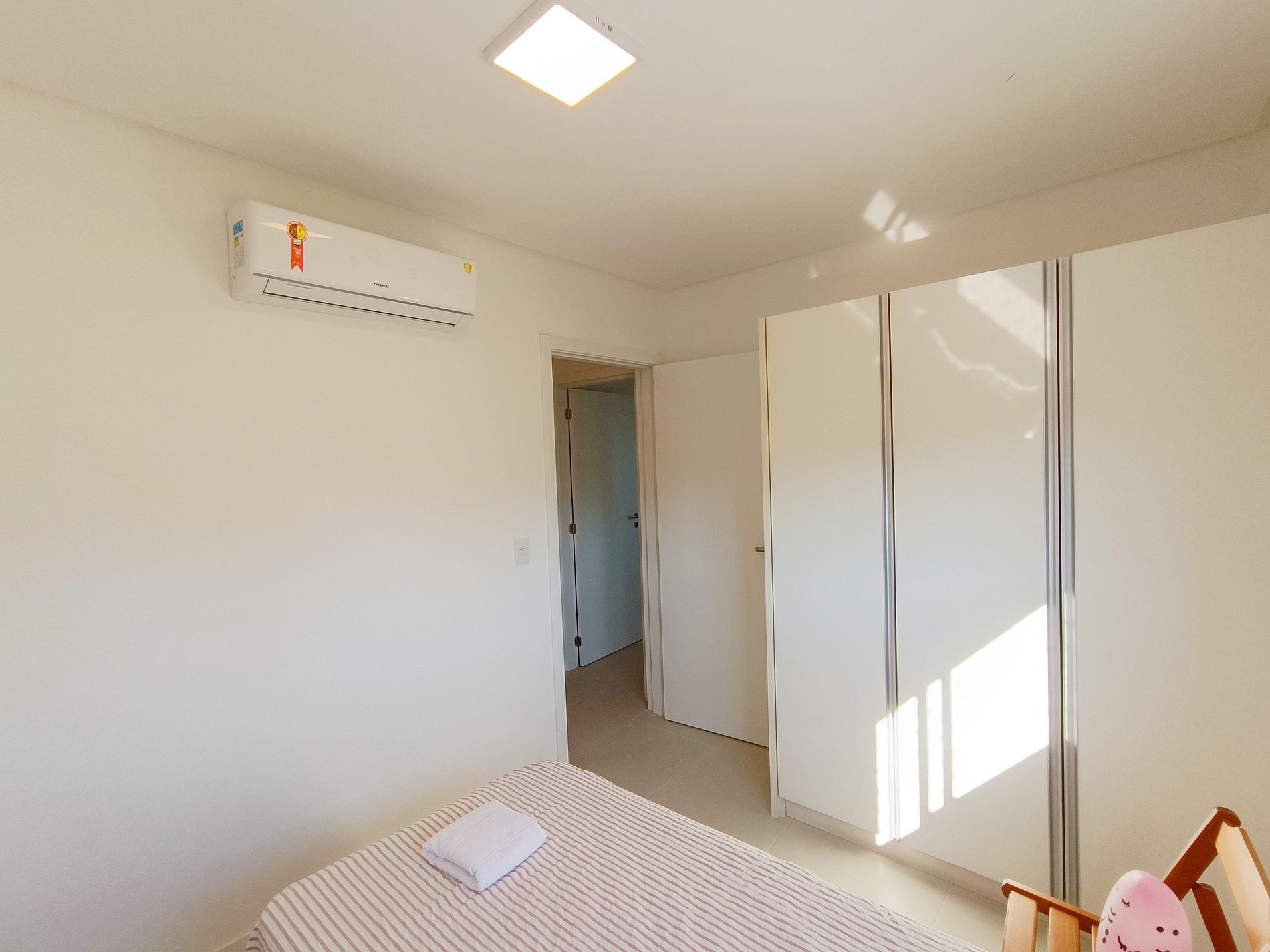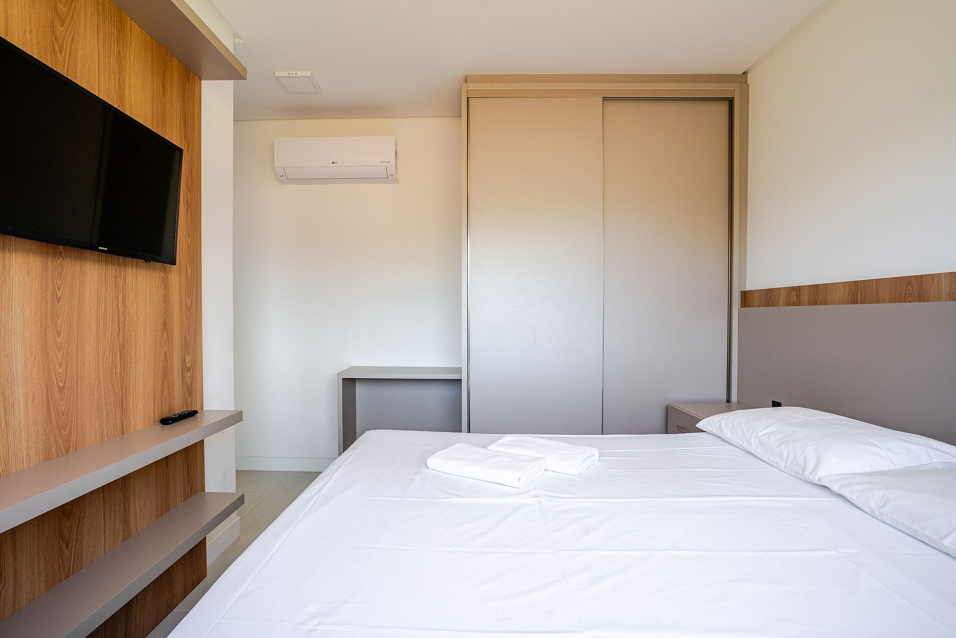 - 1 quarto com cama queen e ar-condicionado;