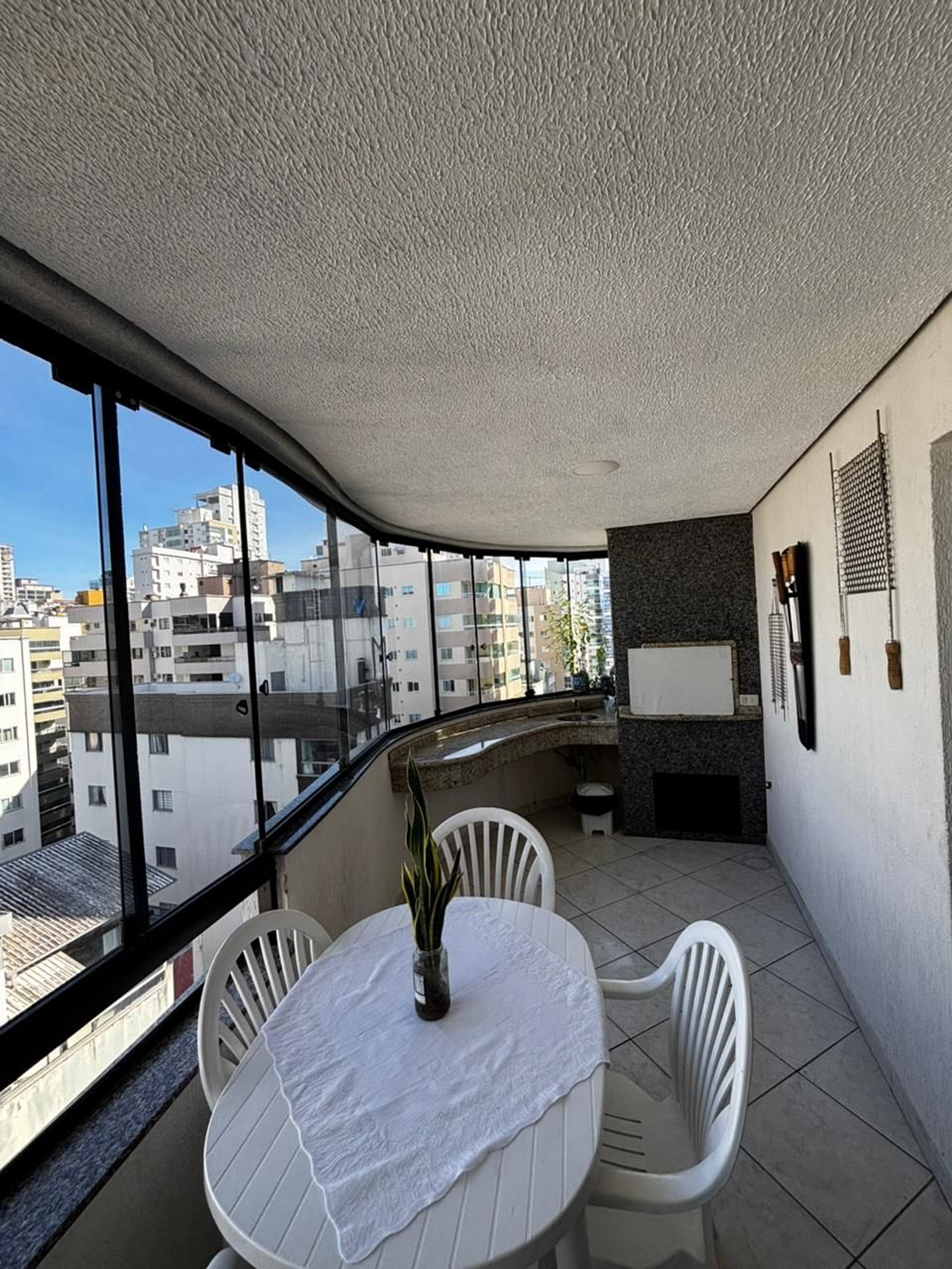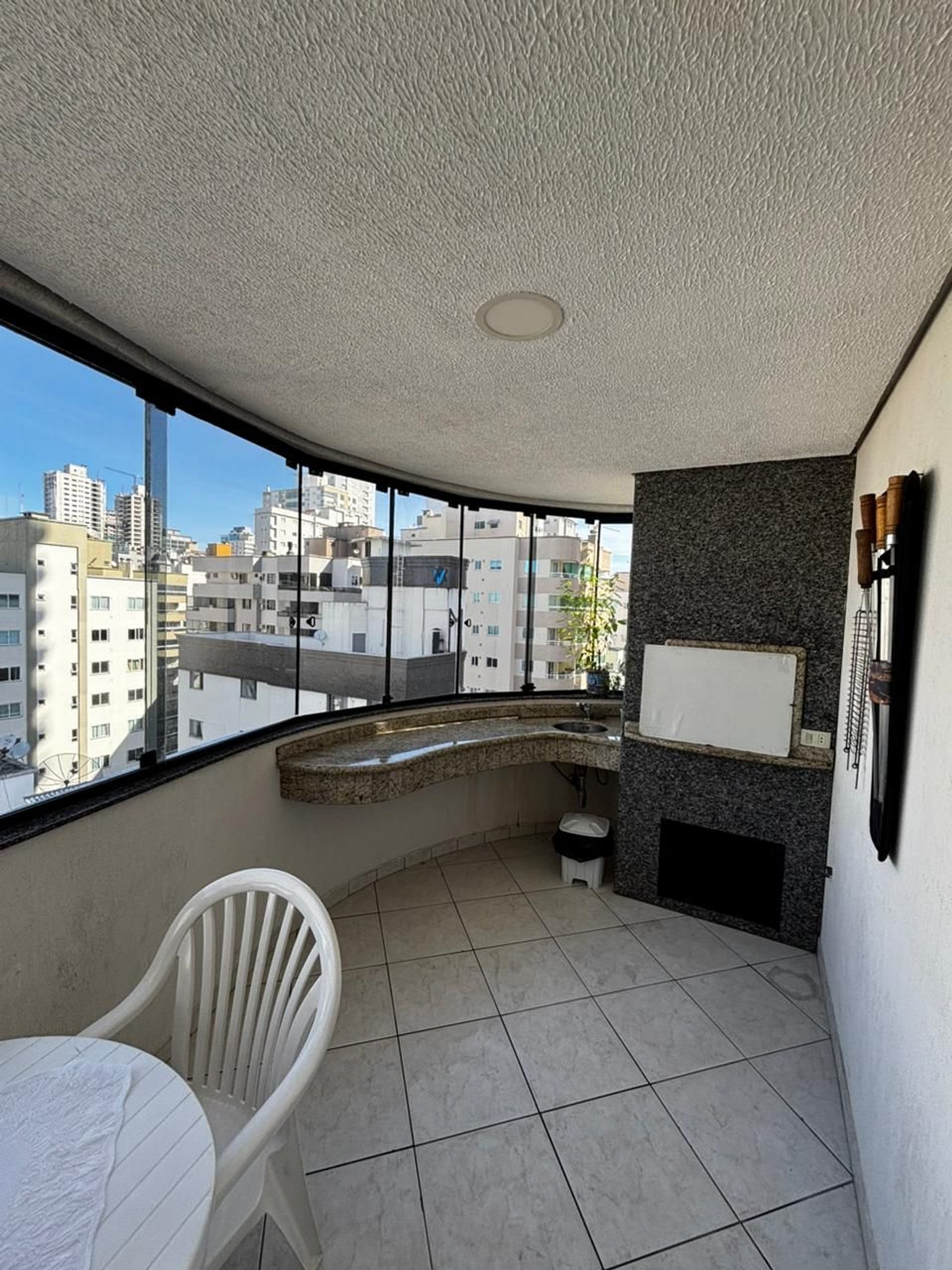 Sacada com churrasqueira, perfeita para momentos de lazer após um dia de praia
