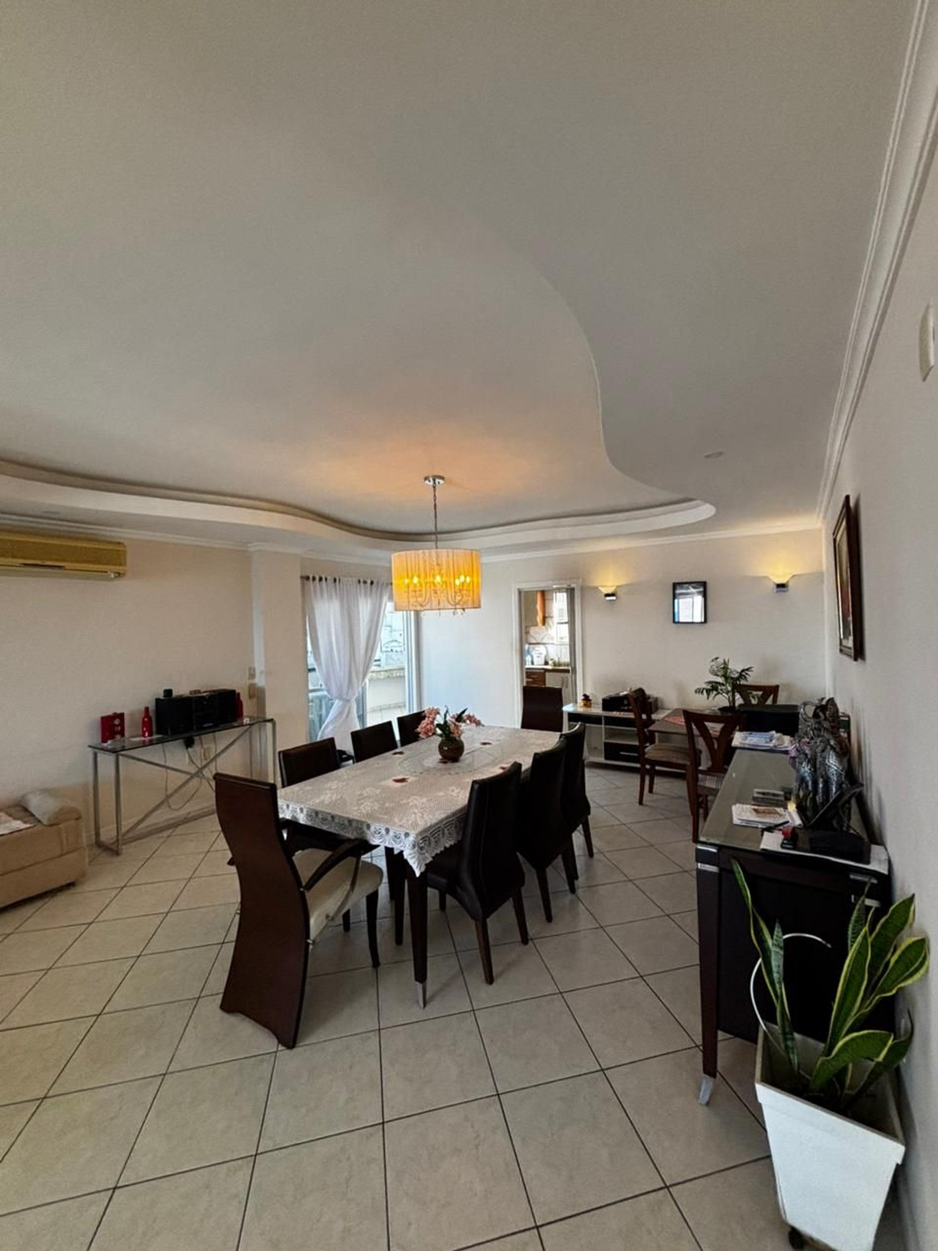 Sala de estar e jantar amplas, proporcionando integração e convivência entre os hóspedes