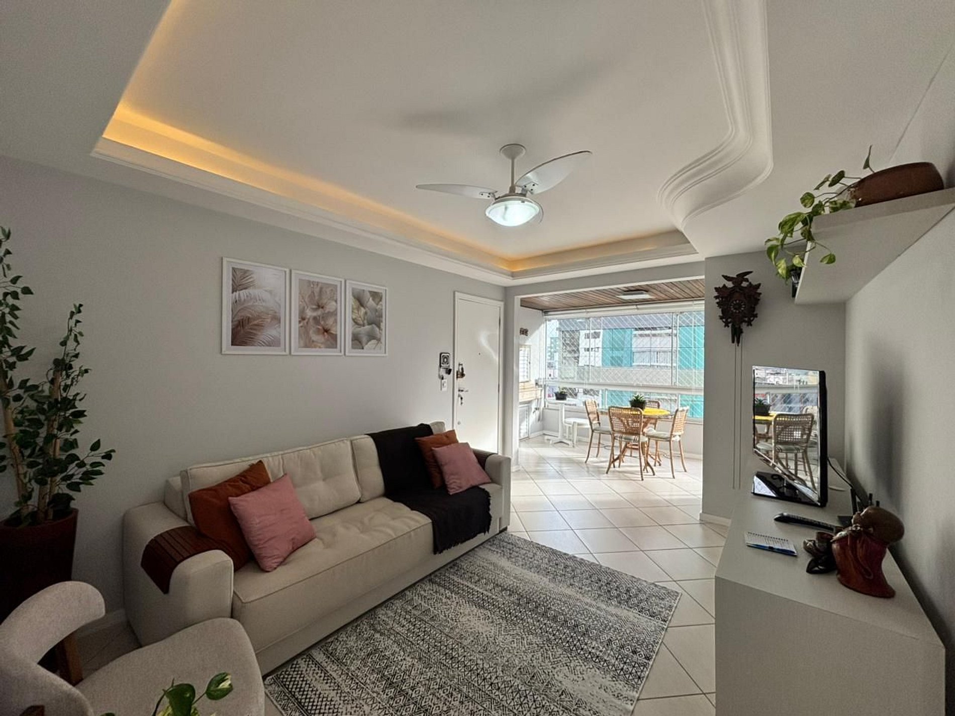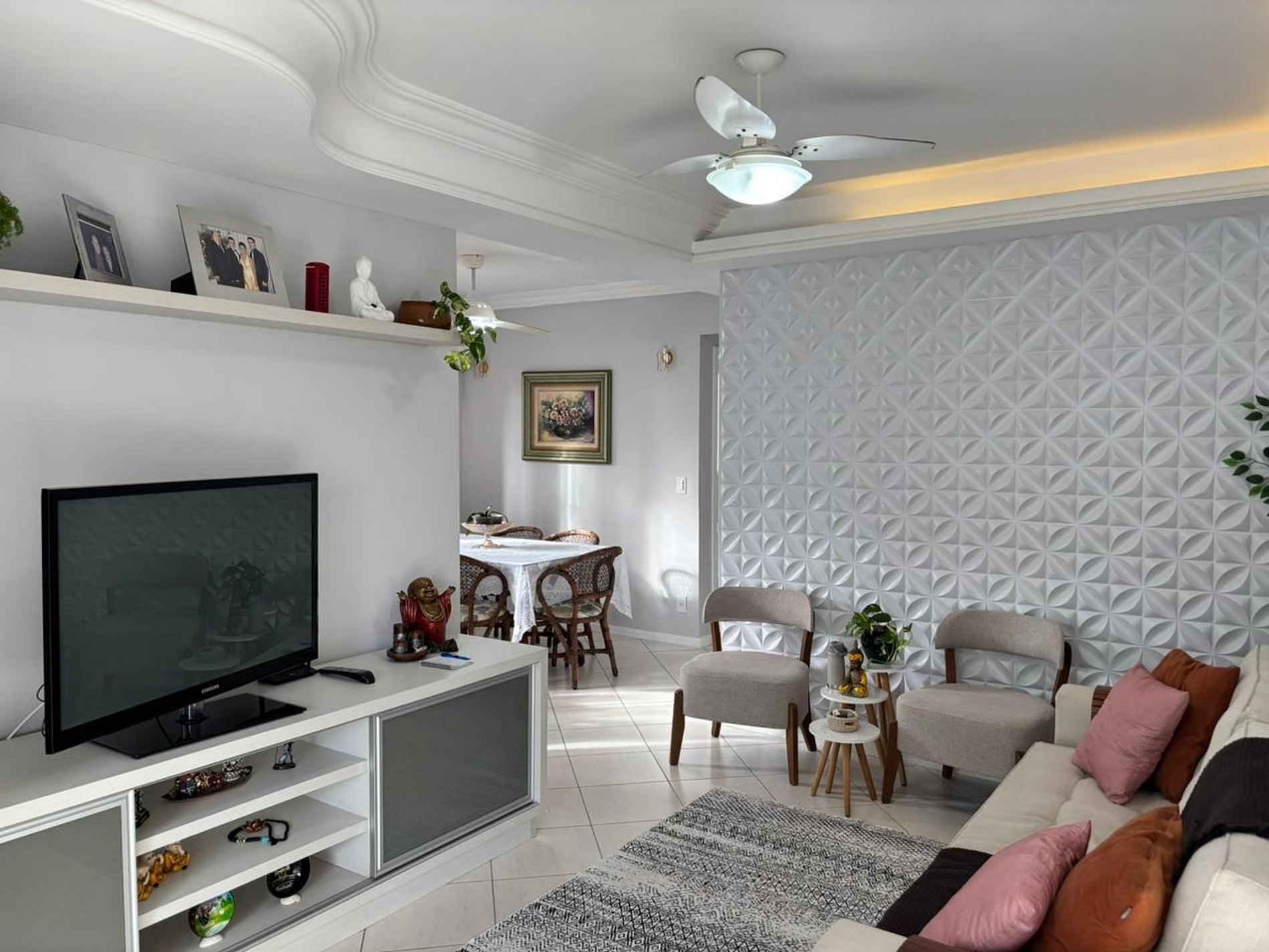 Sala de estar aconchegante integrada à área de jantar