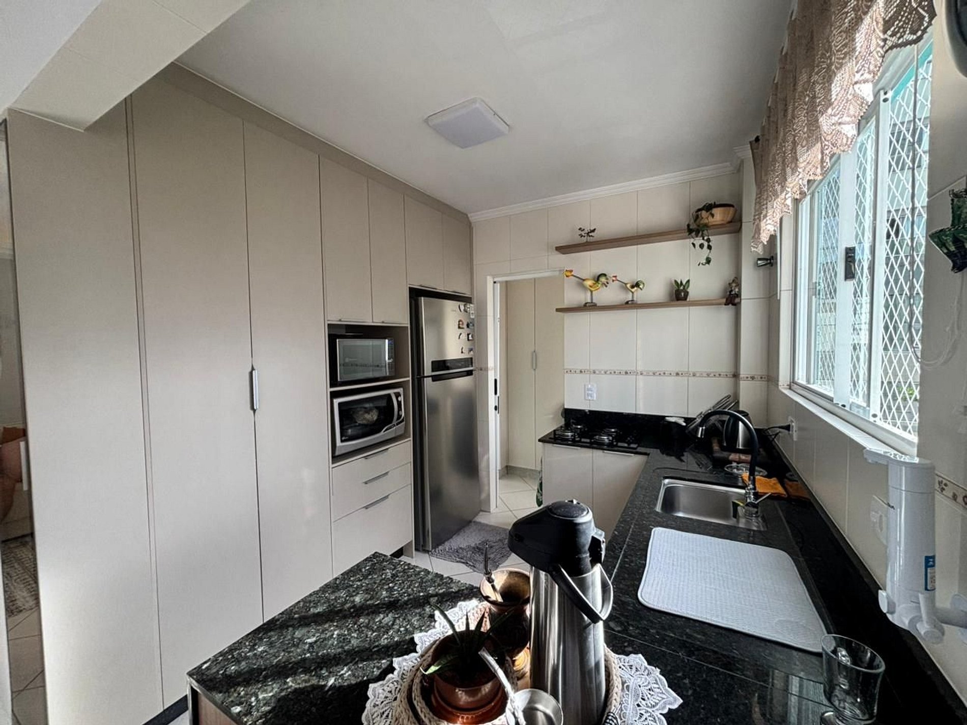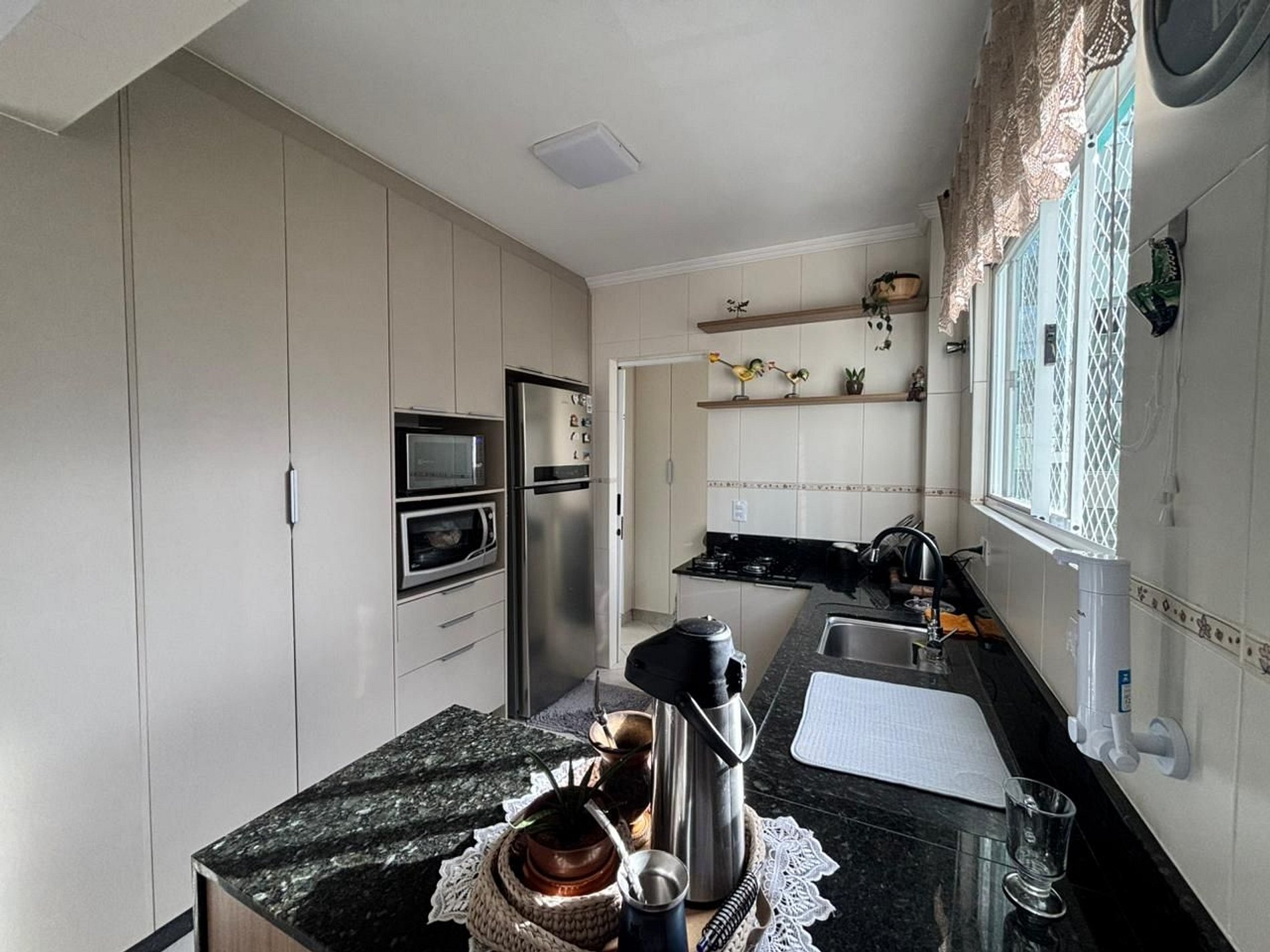 Cozinha completa, equipada com os itens essenciais para preparo de refeições