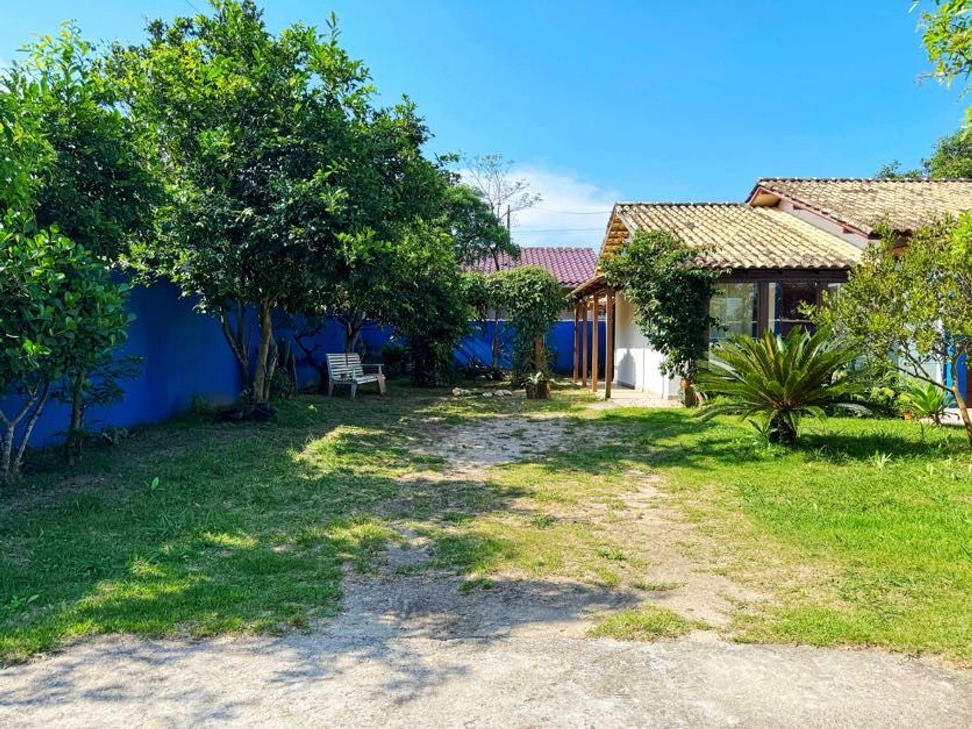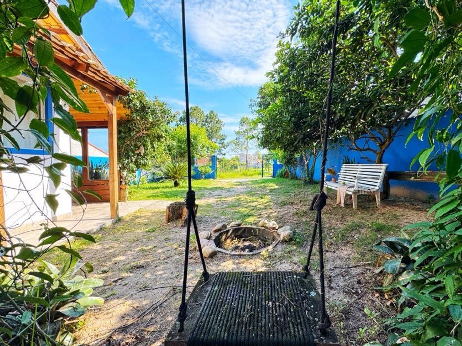 Área externa grande com piscina, espaço para fogueira, arvores... E a 700 metros no final da rua fica a trilha para acessar a belíssima praia dos Moçambique.