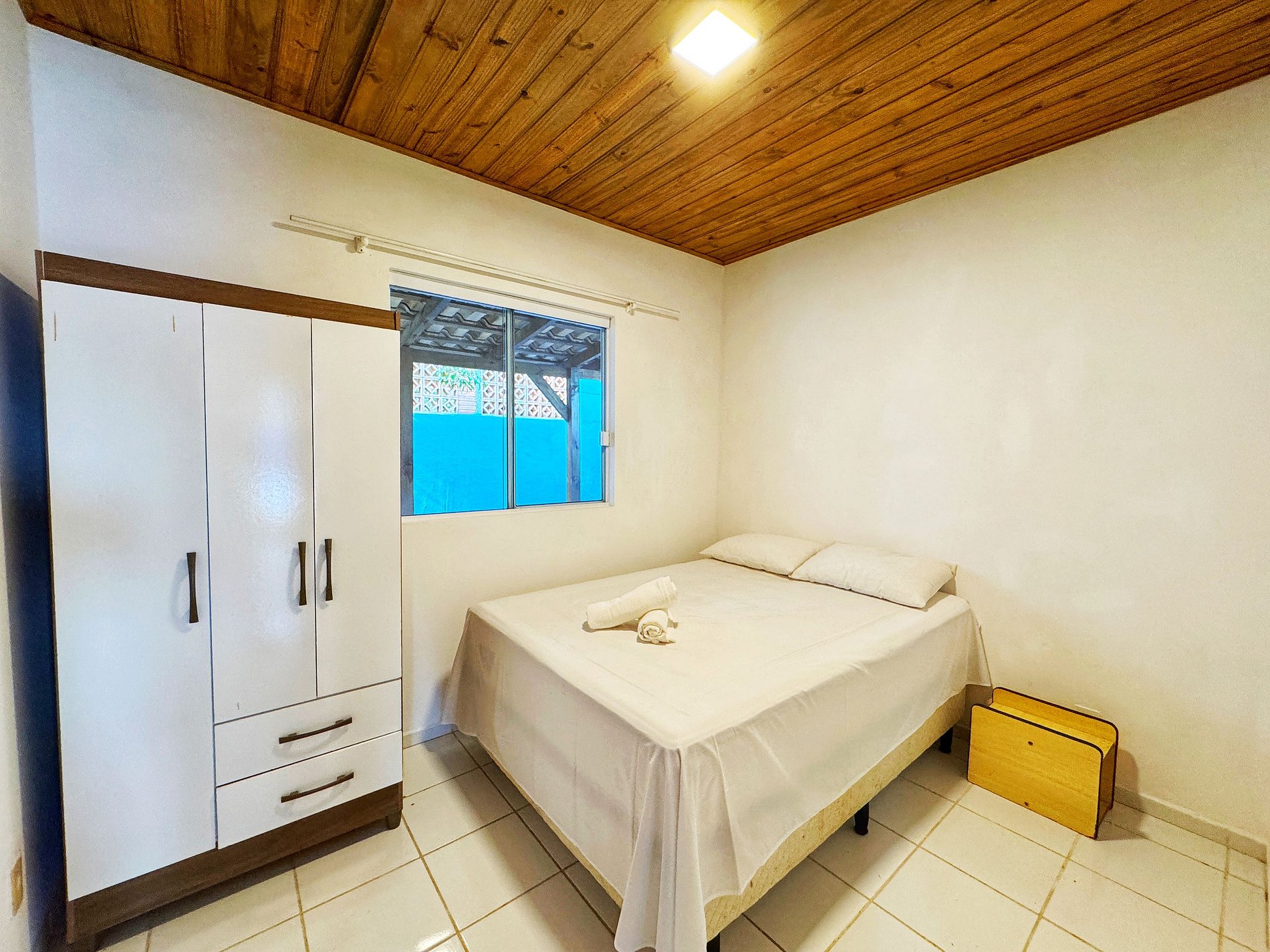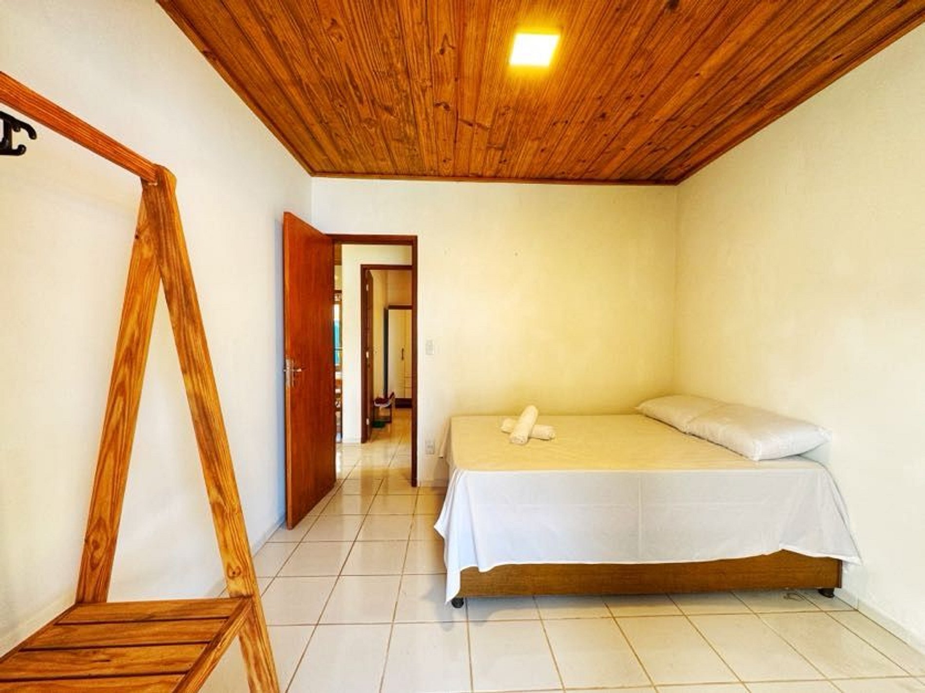 Temos dois quartos de casal, um banheiro completo, oferecemos toalhas, roupa de cama e travesseiros.