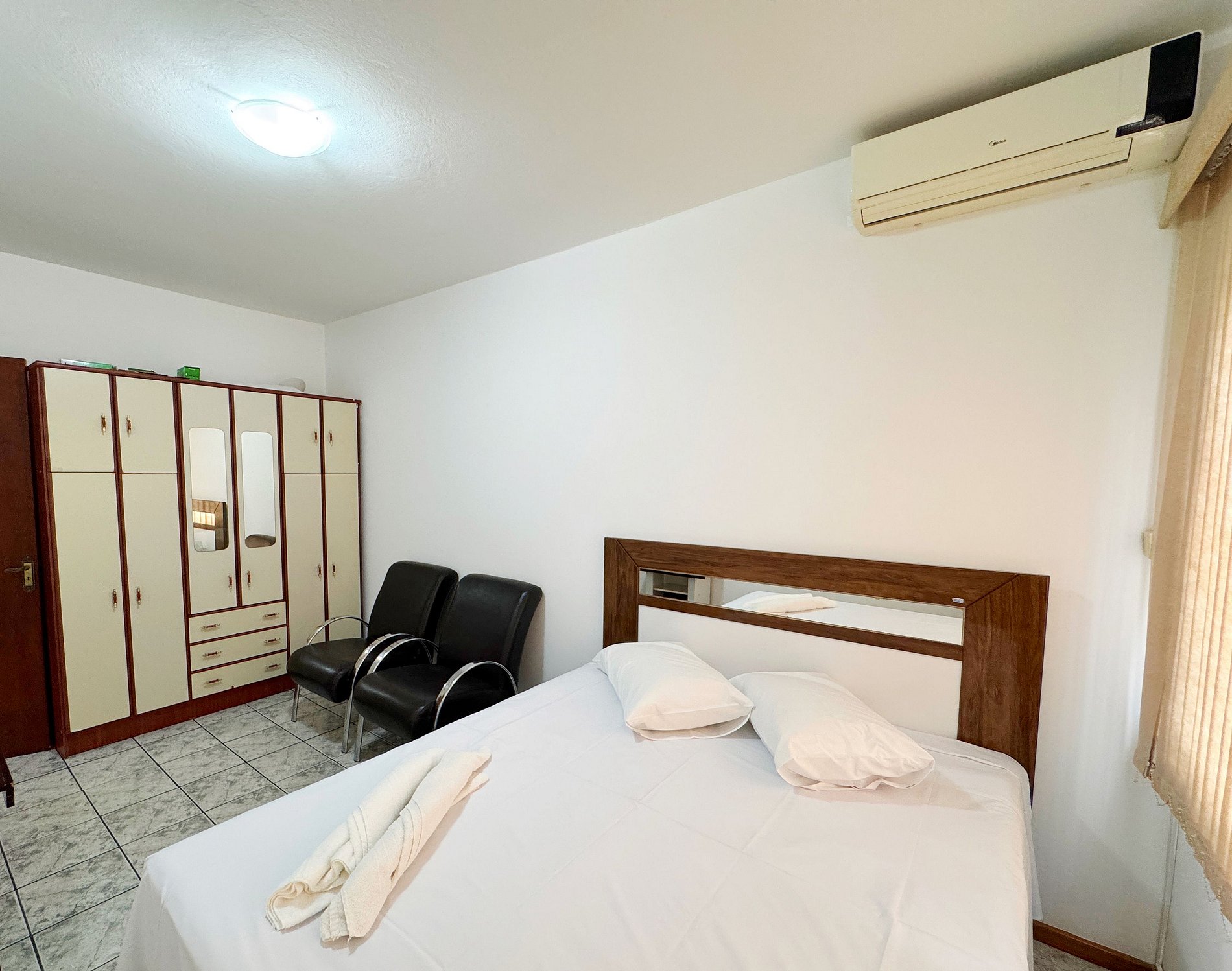 Apartamento de dois dormitórios na área nobre da praia dos Ingleses, a 800 metros do mar! Apartamento bem iluminado e arejado com Internet Wi-fi, e os dois quartos com ar condicionado. Ampla sacada com churrasqueira.