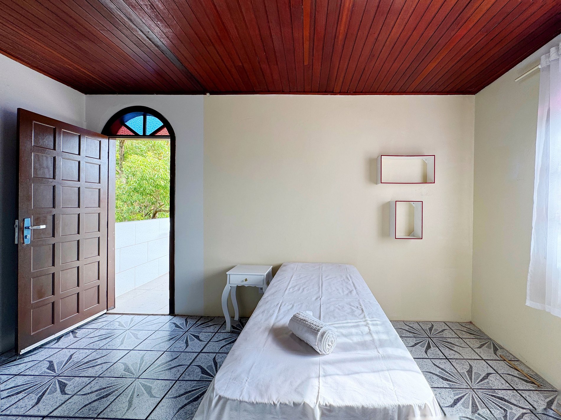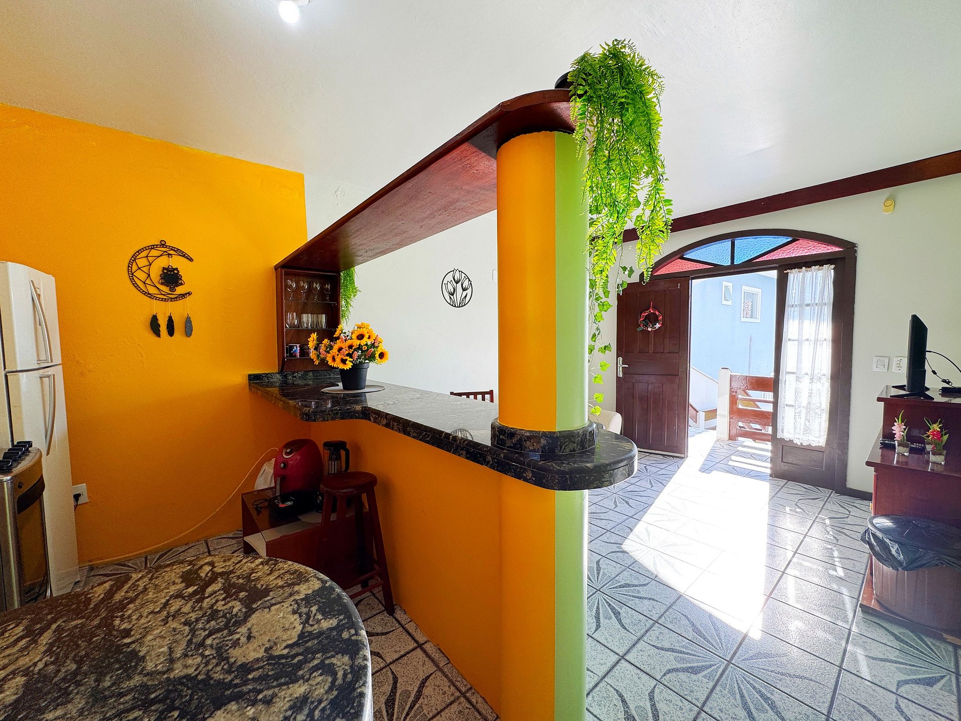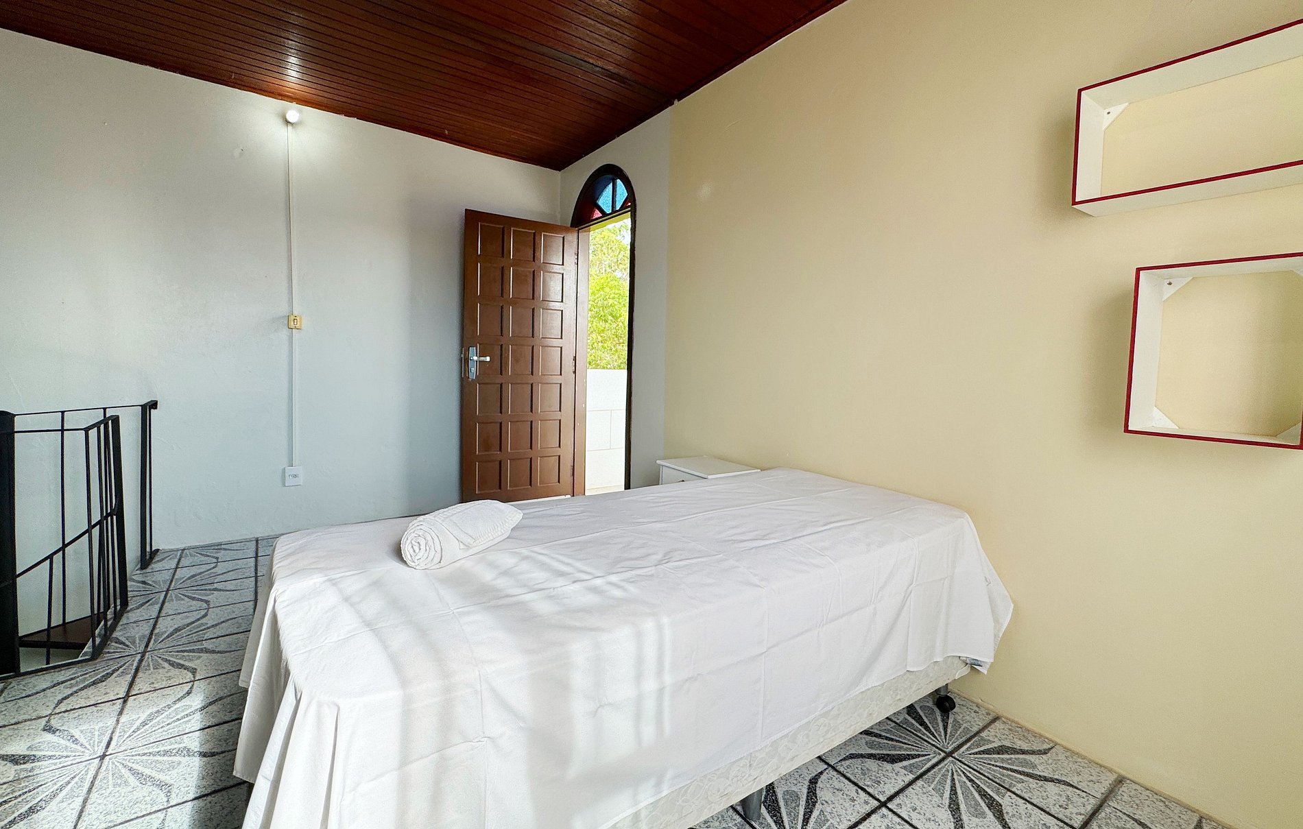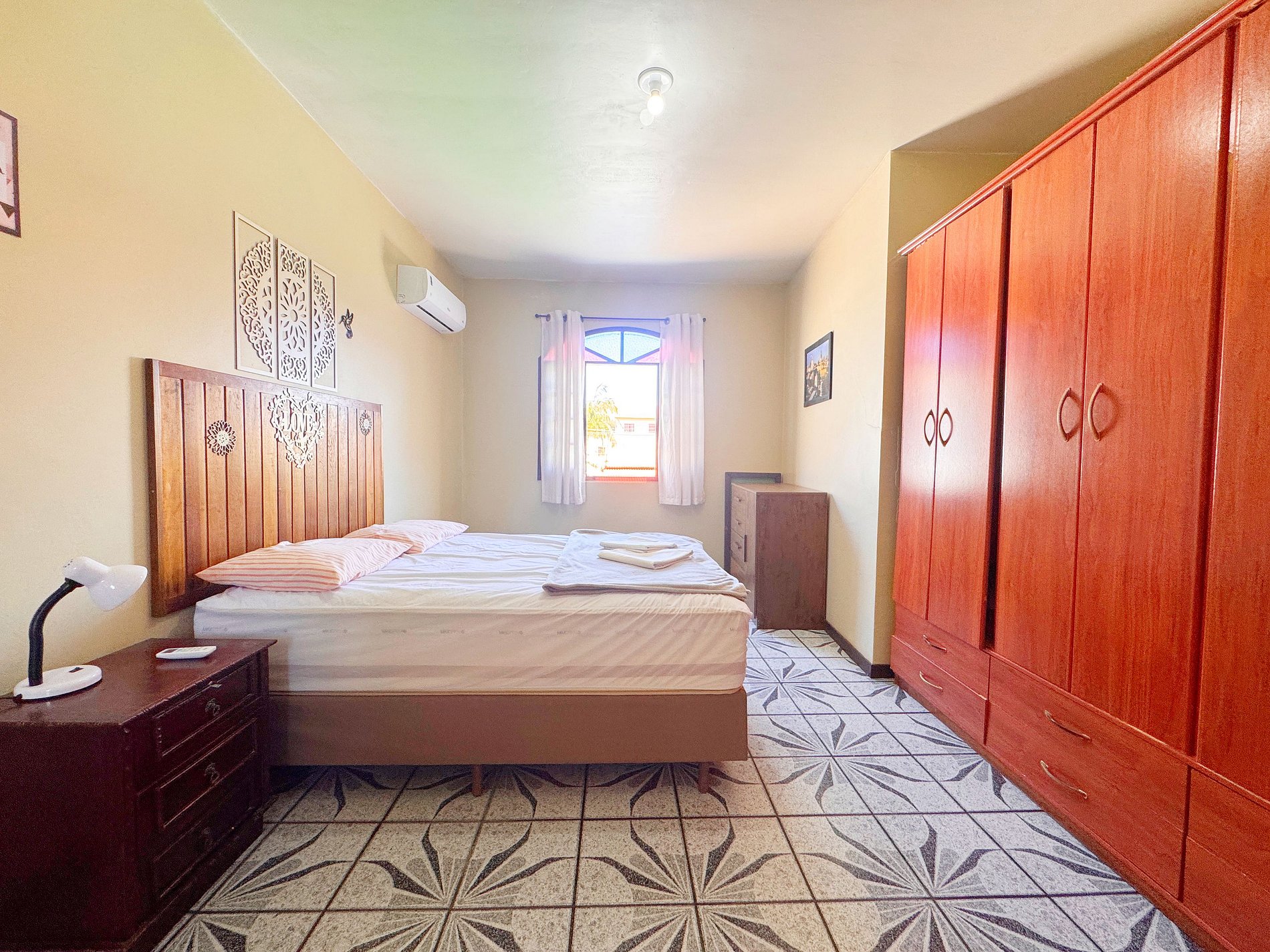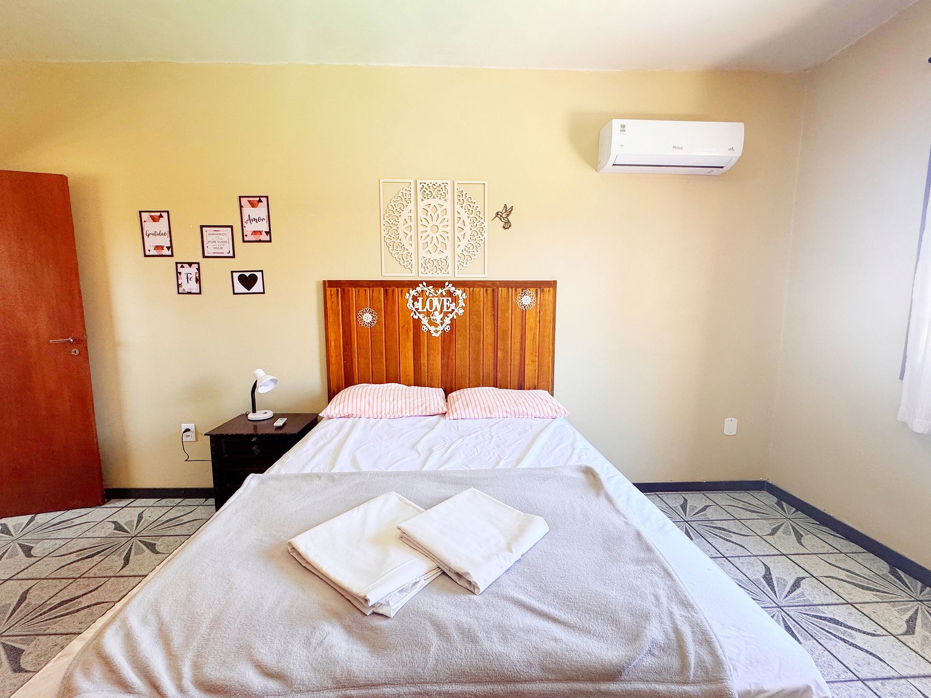 A casa comporta até 3 pessoas, conta com 1 quarto com cama de casal, e outro quarto na parte superior com uma cama de solteiro. Além disso temos cozinha completa, TV, ar-condicionado e uma vaga de estacionamento incluído.
